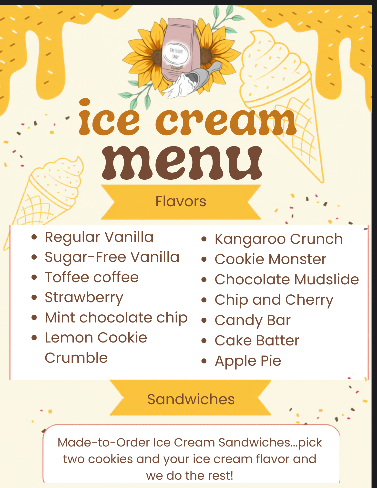 Weekly Soup MenuIce Cream Menu